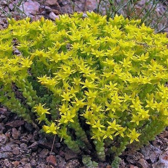 Очиток едкий - многолетний травяной суккулент, в высоту достигает 15 см. Некоторые садоводы называют его декоративным окультуренным сорняком. Растение цветет яркими желтыми цветками с 5 лепестками. Цветки собираются в венцевидные соцветия.