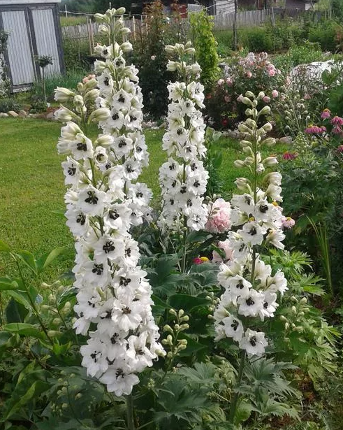 Дельфиниум Хрустальный фантан-Этот белоснежный сорт считается одним из лучших махровых дельфиниумов. Он пригоден для одиночных и групповых посадок.