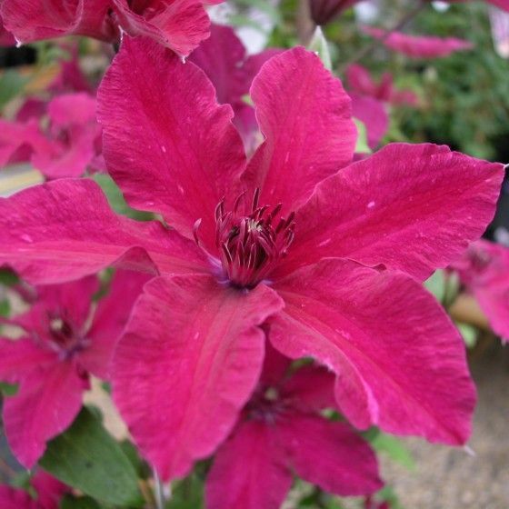 Компактный невысокий клематис высотой 1-1,5 м. Листья тройчатые. Цветки собраны в соцветия, звездообразные, диаметром 12-16 см. Чашелистиков 6, они эллиптические, с волнистыми краями красно- пурпурные, края более ярко окрашены.