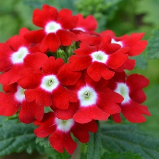 Вербена Дефианс- почвопокровник со стелющимися стеблями, вырастающими в длину на 2,5-3 дм. Цветки яркие, красные, с карминовым оттенком, глазок зеленоватый, окаймлен снежно-белой полоской.