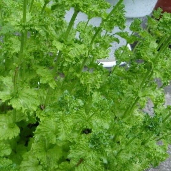 Высота растения 80-90 см, отличается курчавыми листьями и хорошей морозостойкостью. Сочетает в себе вкусовые свойства нескольких видов мят, сохраняя при этом довольно нежный и приятный мятный вкус. В отличие от перечной мяты, у кудрявой нет ментолового привкуса, поэтому в кулинарии ее можно использовать в гораздо больших количествах. Листья кудрявой мяты богаты полезными веществами, их отваривают и применяют в народной медицине.