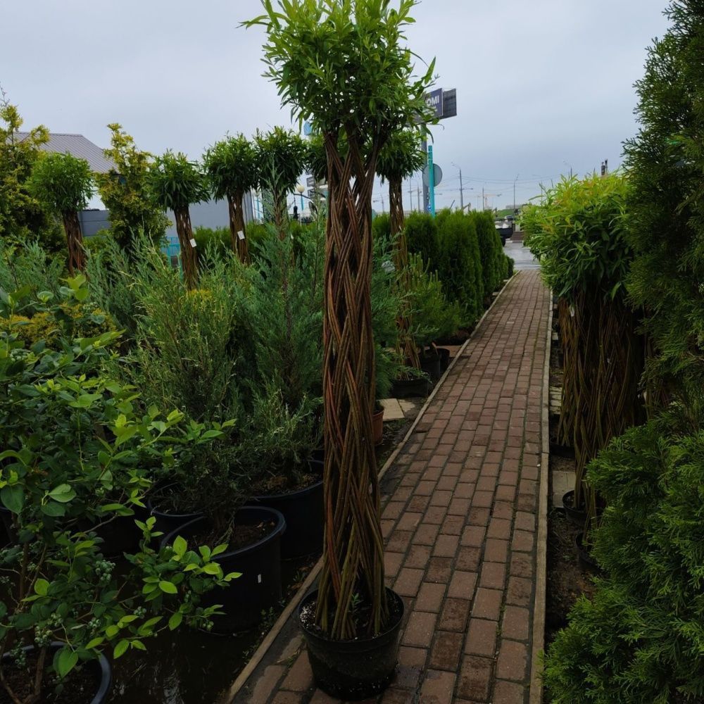 Ива плетеная 200 см – это величественное плетеное дерево высотой 200 см (без учета зеленой кроны), выполненное из ивового прута Salix viminalis. Это растение станет центром внимания в любом саду или ландшафтном дизайне. Горшок объемом 10 литров содержит почвогрунт, изготовленный на заводе из дерново-подзолистой суглинистой почвы, торфа, крупного песка и компоста древесной коры. Крону можно подстригать в течение всего летнего периода, создавая разнообразные формы и размеры.