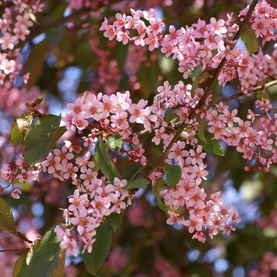 Черемуха Колората - эффектное самоплодное , декоративное дерево 5-6,00 м. Высокая декоративность появляется в период цветения: ярко-розовые соцветия с ароматом миндаля ,гроздями повисают на ветках. Молодой лист пурпурный или фиолетово-медный, далее зеленый, а нижняя сторона с бронзовым оттенком, прожилки весной пурпурные, осенью красно-розовые. Плоды костянка, шаровидные, черные с блеском, съедобные, вяжущие. Растение выделяет фитонциды, уничтожающие мух, клещей, комаров, болезнетворных бактерий.