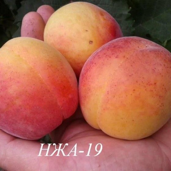 Абрикос "НЖА-19" - этот сорт американской селекции не сравнится ни с каким другим, по крупности своих плодов. Большие шаровидные абрикосы, обладающие сладким вкусом с медовым послевкусием. Сочные, ароматные, крупные и богатые витаминами фрукты готовы к употреблению уже в середине июля. Сорт "НЖА" ценен не только велечиной своих плодов, но и скороплодностью - дерево рано вступает в плодоношение. Цветение / плоды: плод очень крупный - 90-170 грамм, шарообразной формы, с яркой желто-оранжевой окрасой. На солнечной стороне есть нежный красноватый румянец. Кожица слегка опушена. Мякоть светло-желтая, сладкого медового вкуса, с лёгкой кислинкой и ярко-выраженным ароматом. Благоприятные условия развития: солнечные места. В течении 1-2-х месяцев после посадки нужен хороший полив. Ранней весной и поздней осенью делайте побелку ствола дерева медным купоросом и известью, это предотвратит не желательные заболевания. Взрослым деревьям нужны опоры, так как плоды очень крупные и тяготят ветви к земле.