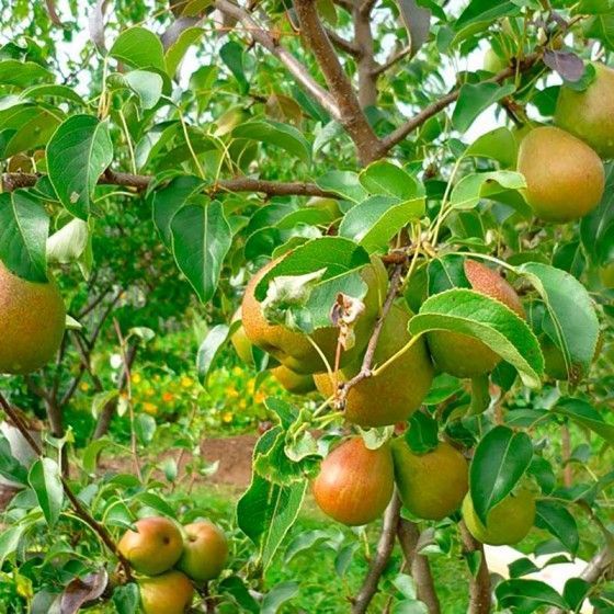 Плоды круглые, зеленовато-желтого цвета с небольшим румянцем. Мякоть очень сочная, сладкая с приятным ароматом мускатного ореха. Собирать груши желательно до созревания во второй половине августа. Этот прием позволит дольше хранить плоды.