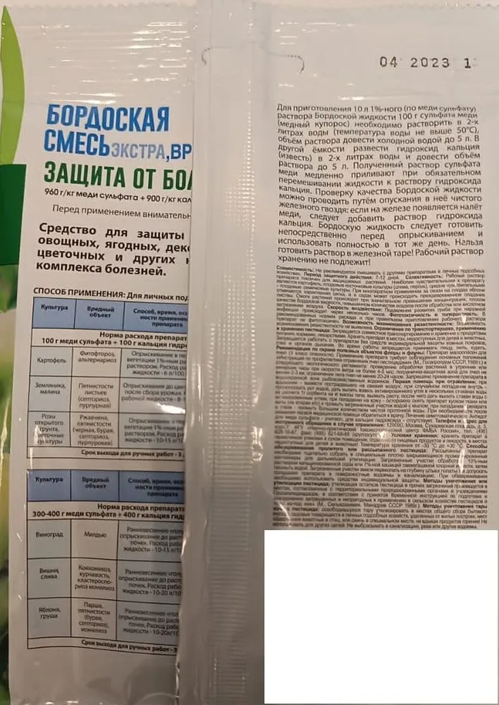 Бордоская смесь — это уникальный препарат, который широко используется в садоводстве и виноградарстве. Она представляет собой смесь медного купороса и извести, что делает её эффективным средством для борьбы с различными заболеваниями растений. В упаковке содержится 100 граммов препарата, что позволяет легко дозировать и использовать его в зависимости от потребностей вашего сада или огорода.
