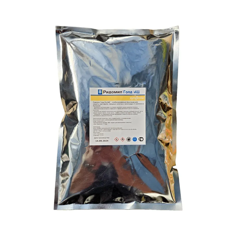 Ридомил Голд МЦ доступен в упаковке по 0,5 кг, что делает его удобным для использования как на небольших участках, так и на более крупных фермерских хозяйствах. Упаковка защищает препарат от влаги и обеспечивает его сохранность до момента использования.