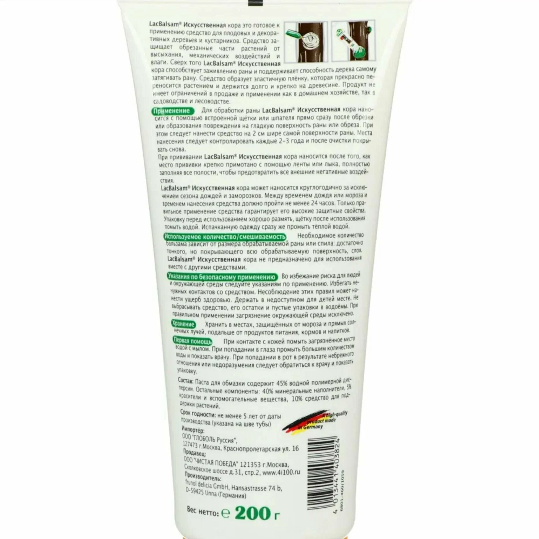 Упаковка содержит 200 грамм бальзама, что достаточно для обработки нескольких деревьев. Благодаря компактному размеру, бальзам удобно хранить и использовать в любое время. Не забывайте о важности своевременной обработки ран, чтобы ваши деревья оставались здоровыми и красивыми на протяжении многих лет.