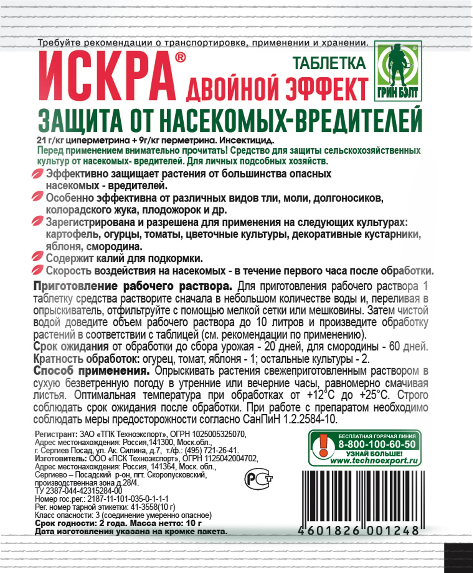 Искра двойной эффект от компании Green Belt – это уникальный продукт, который сочетает в себе высокую эффективность и удобство использования. Упаковка в 10 грамм идеально подходит как для профессионалов, так и для любителей. Этот продукт создан для тех, кто ценит качество и результат. Искра двойной эффект обеспечивает надежную защиту и активное воздействие на растения, способствуя их здоровому росту и развитию.
