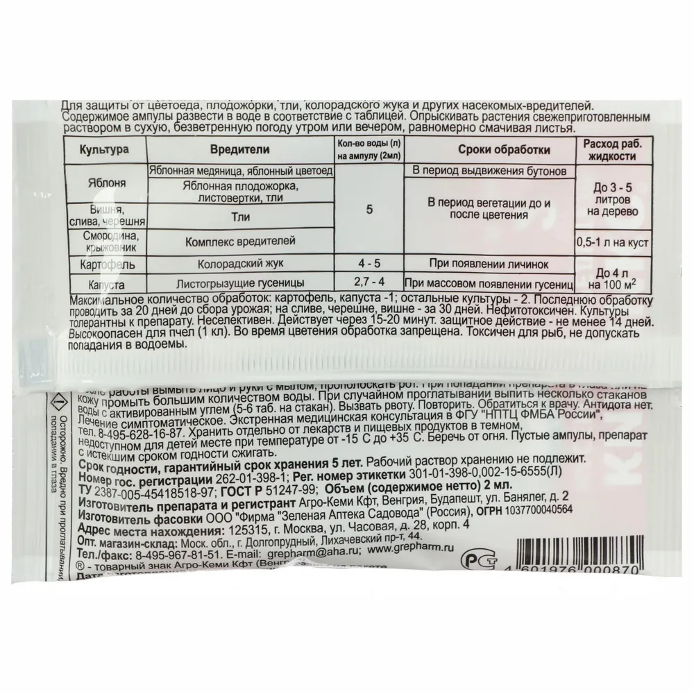 Белокрылка, гусеница, колорадский жук, листовертка, медяница, моль, муха, пилильщик, плодожорка, совка, тля, трипсы |