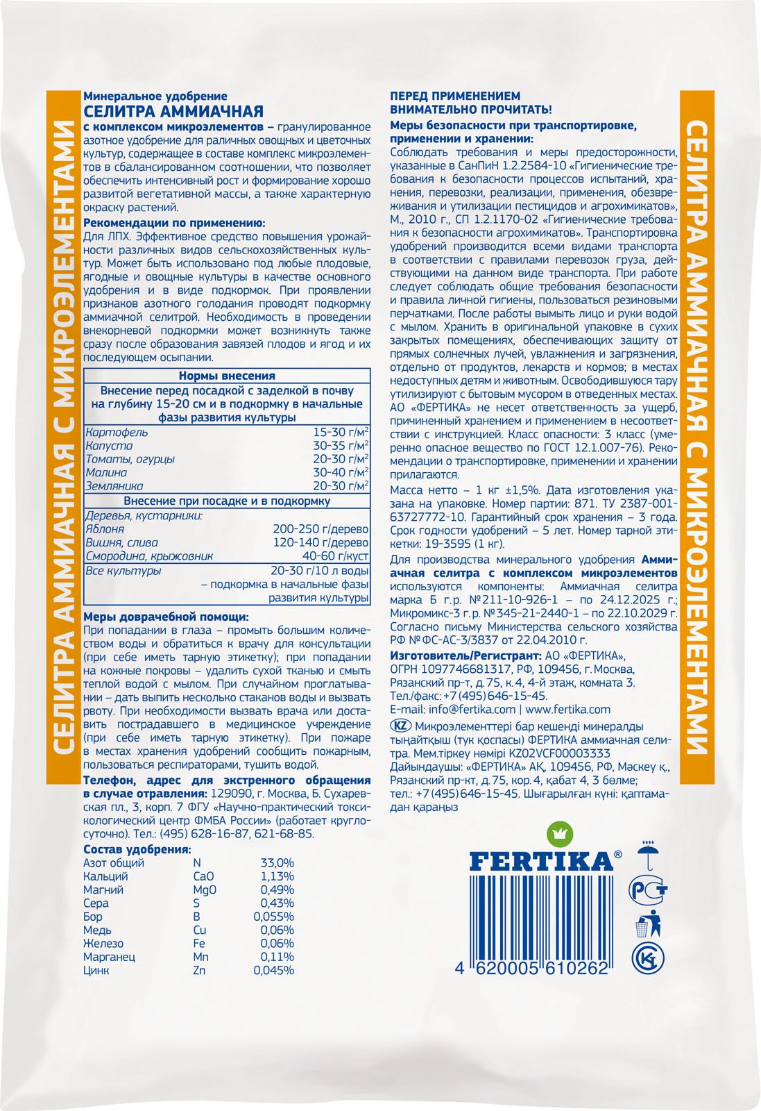 Аммиачная селитра от Фертика — это надежный помощник в вашем саду или огороде. С ее помощью вы сможете значительно повысить урожайность и качество ваших растений. Не упустите возможность сделать ваш сад более плодородным и красивым с помощью этого замечательного удобрения!