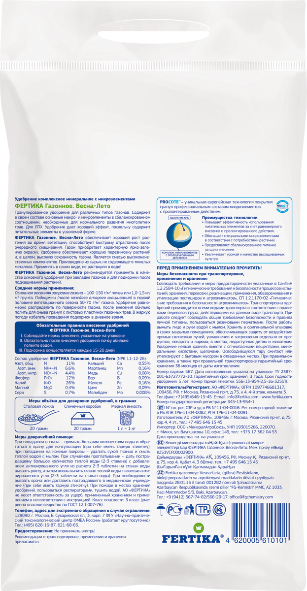 Удобрение Весна-Лето Фертика подходит для всех типов газонов, включая спортивные и декоративные. Оно обеспечивает равномерное распределение питательных веществ, что позволяет избежать перегрузки и способствует гармоничному развитию трав. Применение данного удобрения не только улучшает внешний вид газона, но и повышает его устойчивость к неблагоприятным погодным условиям, таким как засуха или сильные дожди.