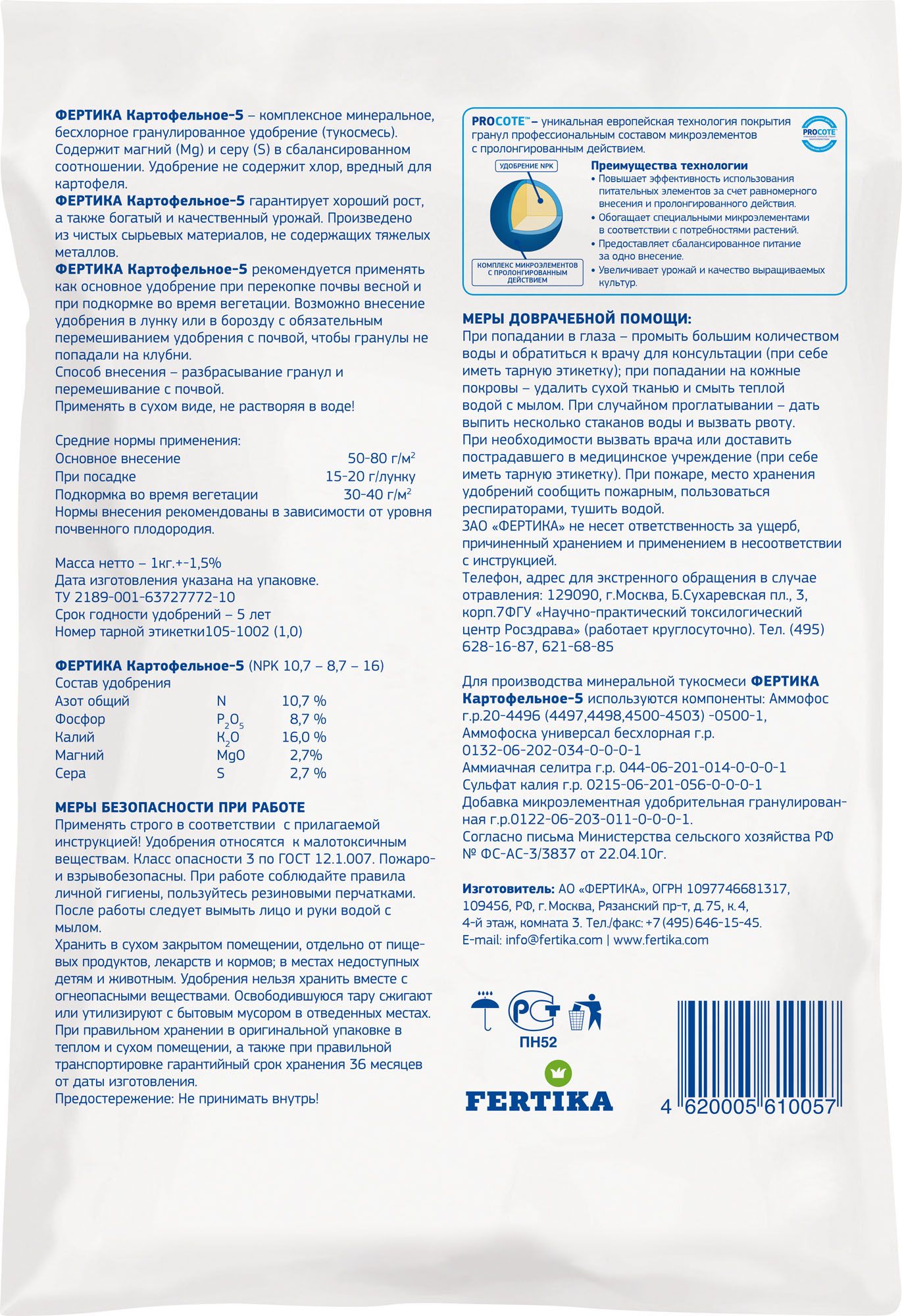 - Сбалансированный состав для полноценного питания картофеля.