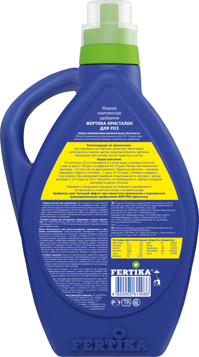 Кристалон для роз – это надежный помощник в уходе за вашими любимыми цветами. С его помощью вы сможете добиться великолепного цветения и здоровья ваших роз. Не упустите возможность сделать ваш сад еще более красивым и ухоженным, используя это удобрение. Заказывайте Кристалон для роз 500мл и наслаждайтесь результатами!