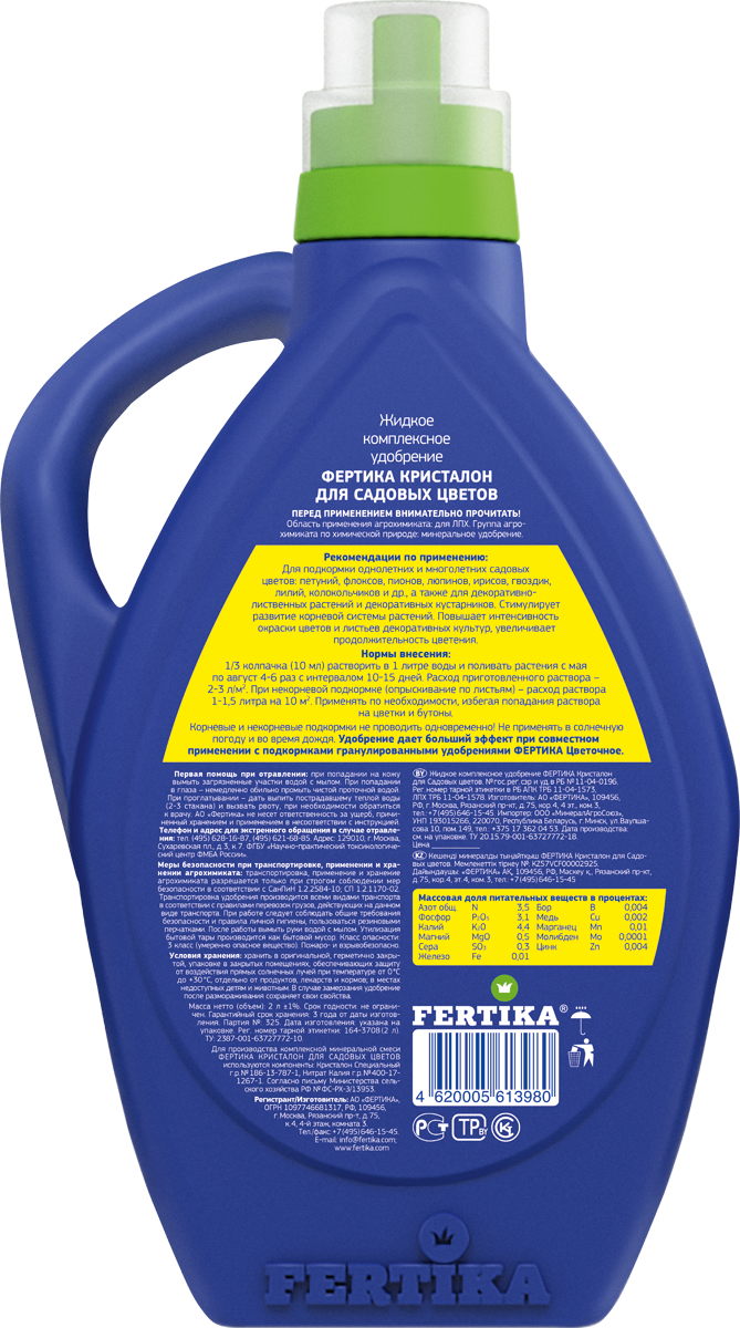 Кристалон для садовых цветов – это высококачественное удобрение, специально разработанное для обеспечения ваших растений всеми необходимыми питательными веществами. Упаковка объемом 500 мл идеально подходит как для опытных садоводов, так и для начинающих любителей цветоводства. С помощью этого удобрения ваши цветы будут радовать вас яркими и насыщенными оттенками, а также здоровым и крепким ростом.