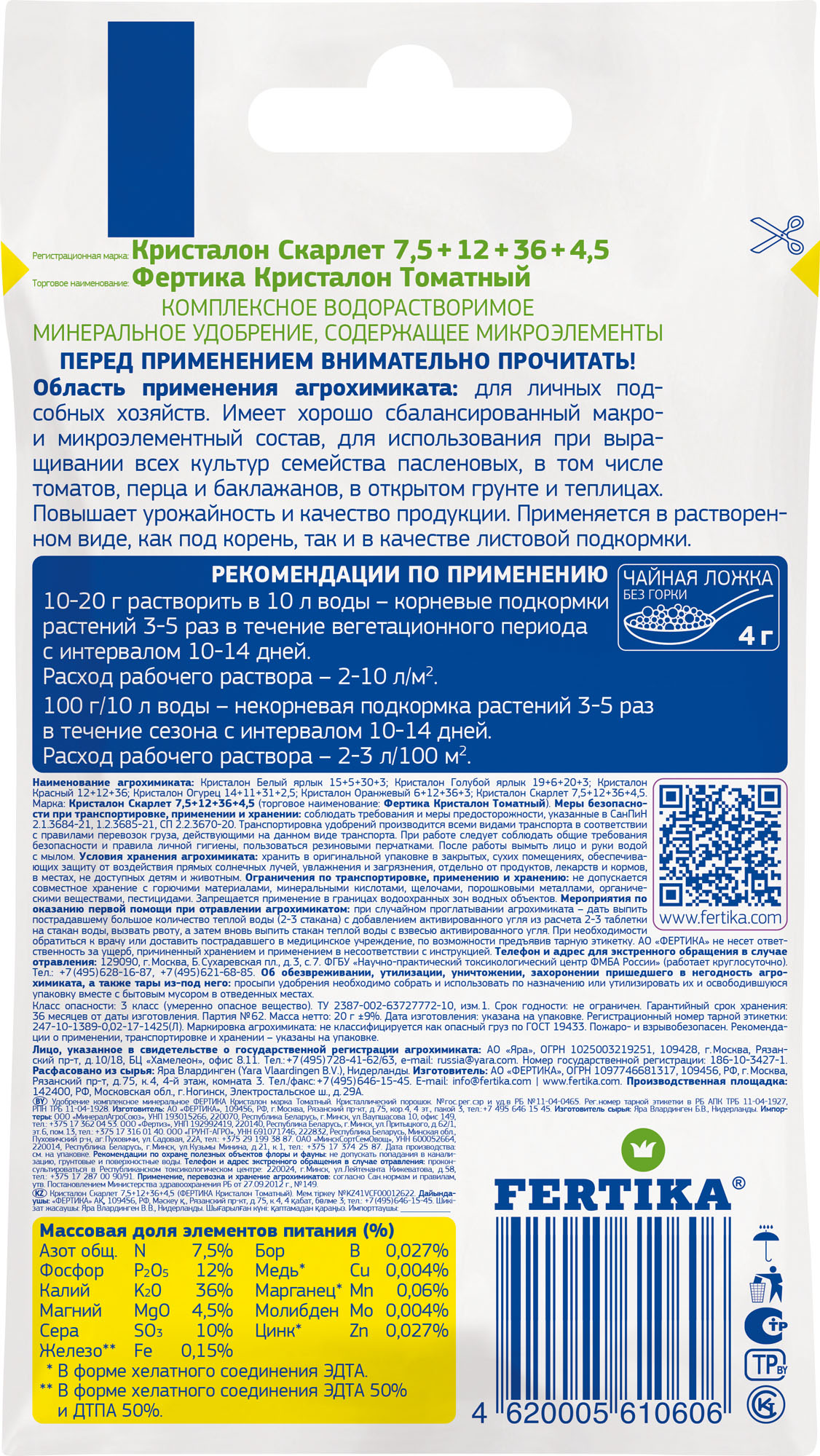 Кристалон Томатный – это надежный помощник в вашем саду, который поможет вам вырастить крепкие и урожайные томаты. Не упустите возможность сделать ваши растения более здоровыми и продуктивными. Выбирайте Кристалон и наслаждайтесь результатами своего труда!