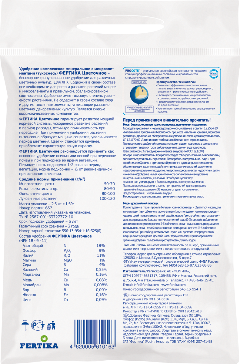 Фертика подходит для всех видов цветущих растений, включая комнатные цветы, садовые растения и декоративные кустарники. Удобрение способствует не только улучшению внешнего вида растений, но и их устойчивости к болезням и вредителям. Благодаря высокому качеству компонентов, вы можете быть уверены в том, что ваши растения получат все необходимое для здорового роста и развития.