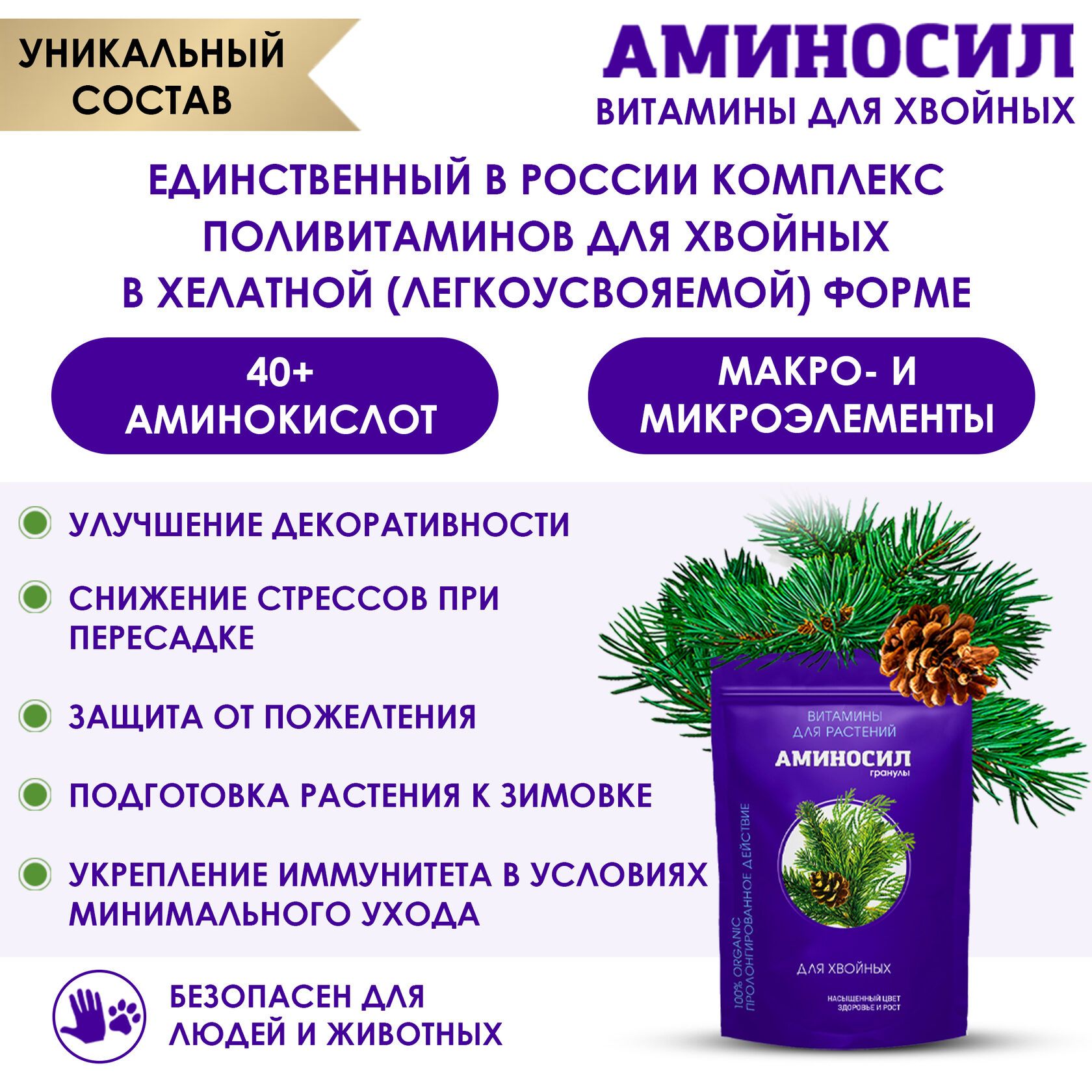 Гранулы "Аминосил для хвойных" – это высококачественное удобрение, специально разработанное для поддержки здоровья и роста хвойных растений. Содержит все необходимые микроэлементы и аминокислоты, которые способствуют укреплению корневой системы и повышению устойчивости к неблагоприятным условиям. Удобная упаковка в 300 грамм позволяет легко дозировать и применять продукт в любое время года.