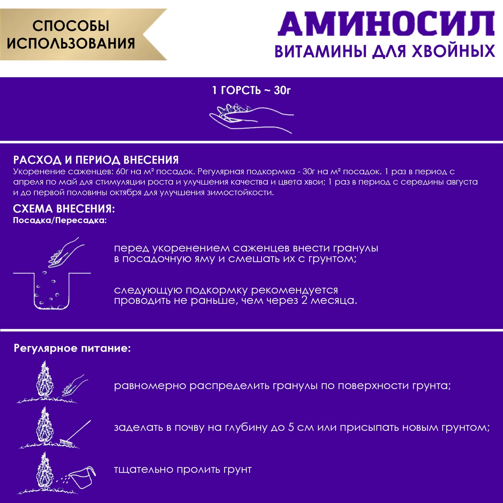 Использование гранул "Аминосил" не только улучшает внешний вид ваших хвойных растений, но и способствует их здоровью на клеточном уровне. Благодаря уникальной формуле, содержащей аминокислоты, растения получают дополнительную энергию для роста, что особенно важно в период активного вегетационного сезона. Применение данного удобрения поможет вам создать красивый и ухоженный сад, который будет радовать глаз на протяжении всего года.