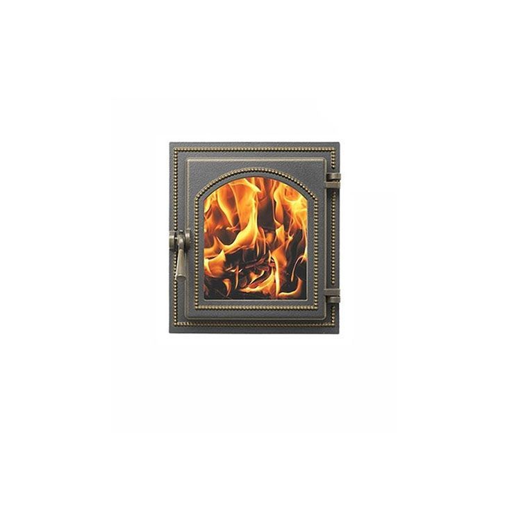 Эта печная топочная дверца цвета антрацита смотрится очень элегантно – в том числе и благодаря лаконичности дизайна. Главная ее особенность – это наличие прозрачной стеклянной вставки. Для нее используется не просто стекло, а прошедшая специальную обработку металлокерамика. Это позволяет обеспечить ее высокую жаропрочность, а также устойчивость к механическим повреждениям. При этом прозрачная вставка позволяет любоваться игрой пламени без риска обжечься – с внешней стороны стекло не так сильно нагревается. А ручка дверцы и вовсе сделана из материала с низкой теплопроводностью.