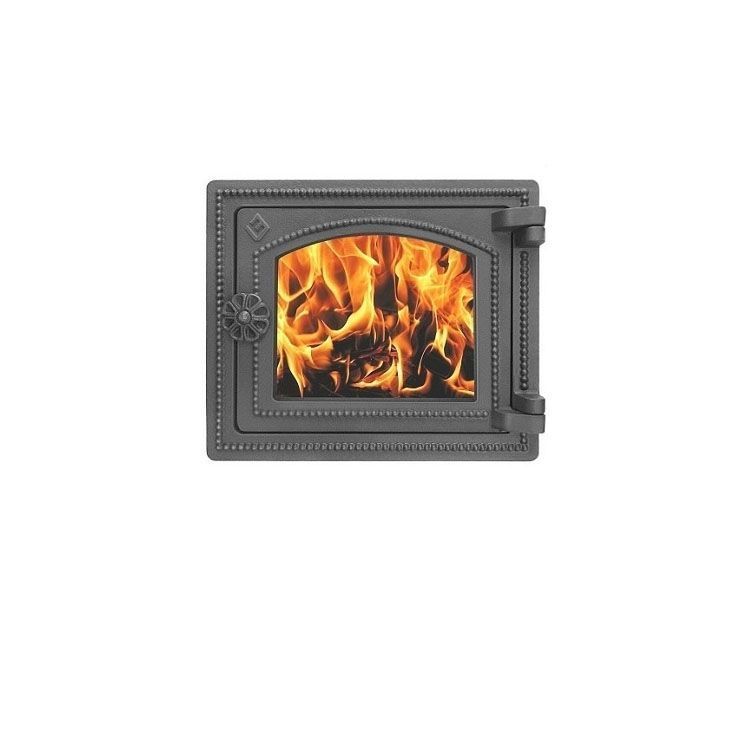 Эта топочная дверца цвета антрацита отличается простым, но элегантным дизайном. Главная ее особенность – использование для полотна чугунного сплава с его высокой теплопроводностью и наличие прозрачной вставки из немецкой жаропрочной стеклокерамики, которая позволяет любоваться игрой пламени без какого-либо риска получить ожог. Вообще использование такой топочной дверцы позволяет значительно повысить уровень пожарной безопасности и снизить вероятность травмы. Следует также отметить, что топочные дверцы такой конструкции фиксируются при помощи надежных креплений, способных выдержать солидный вес чугунного полотна.
