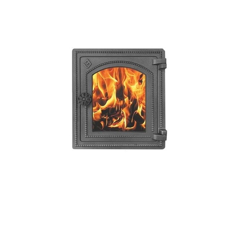 Эта топочная дверца оттенка антрацита разработана для печи. Это повлияло и на форму изделия, и на его дизайн. Но при этом дверца все равно является очень удобной и функциональной. Она устанавливается на очень надежные крепления, которые могут выдержать достаточно большой вес полотна, отлитого из чугуна. Это прочный и долговечный металл, который обладает также высокой теплопроводностью. Особенностью этой модели является наличие прозрачной вставки из жаропрочной стеклокерамики – она обеспечивает высокий уровень пожарной безопасности, и в то же время дает возможность любоваться пламенем, разгорающимся в топке.