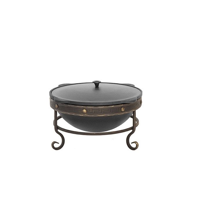 Кованая подставка под казан - это не только качественное функциональное оборудование для камина или костра, но и эстетический декор, который порадует любителей изысканного стиля. Классическая конструкция универсальна для жаропрочных казанов, выпускается под объём в 6-12 литров. Стальной каркас прочно стоит на ножках, удерживая посудину на верхней рамке. Ненавязчивый орнамент и фурнитура дополняют изделие сверху, удачно вписывая его в старинный и классический дизайн помещений. Благодаря небольшом весу конструкция легко транспортируется, не доставляя никаких неудобств.