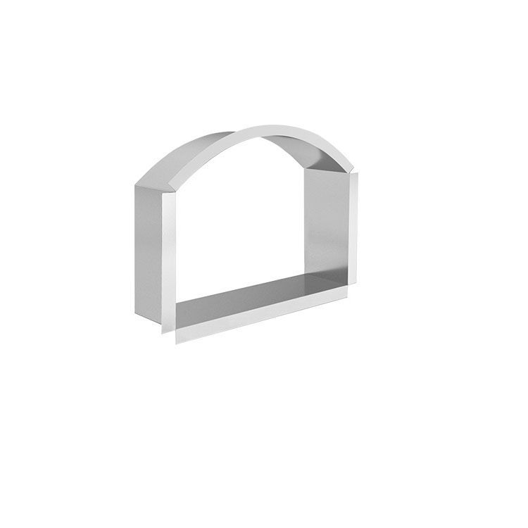 Крупный монтажный тоннель для камина, выполненный из нержавейки высокого качества с жаростойким эффектом и защитой от деформаций и разрушения. Такой короб ставится в процессе кладки камня на много лет и обеспечивает поддержку проёма и опору для устанавливаемых дверей и решёток. Выбор подходящего тоннеля должен основываться на проекте печи или камина и понравившейся модели дверцы. Проём в 340х420х120 мм с арочным верхом - хороший вариант для оформления отопительного окна. Стальной каркас выпускается некрашеным, оборудован внешними бортиками для контроля углубления.