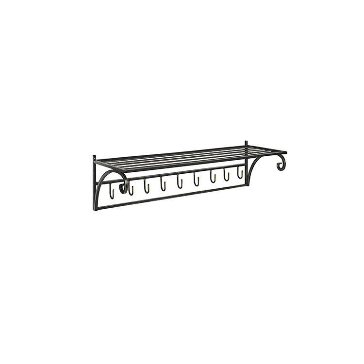 Стальная вешалка Везувий для одежды и предметов обихода с защитным декоративным покрытием отличается повышенной стойкостью к влаге, непогоде и механическим повреждениями, поэтому может использоваться в прихожих и гардеробах, в саунах и бассейнах, на кухне. Изящная кованая конструкция одновременно выглядит неброско и роскошно, что позволяет вписать её практически в любой дизайн интерьера. Удлинённый корпус снабжён 9 глубокими простыми крючками, на которые можно вешать даже объёмные предметы за петли и выемки. Каркас выполнен таким образом, чтобы верхнюю полку можно было использовать для головных уборов и клади.